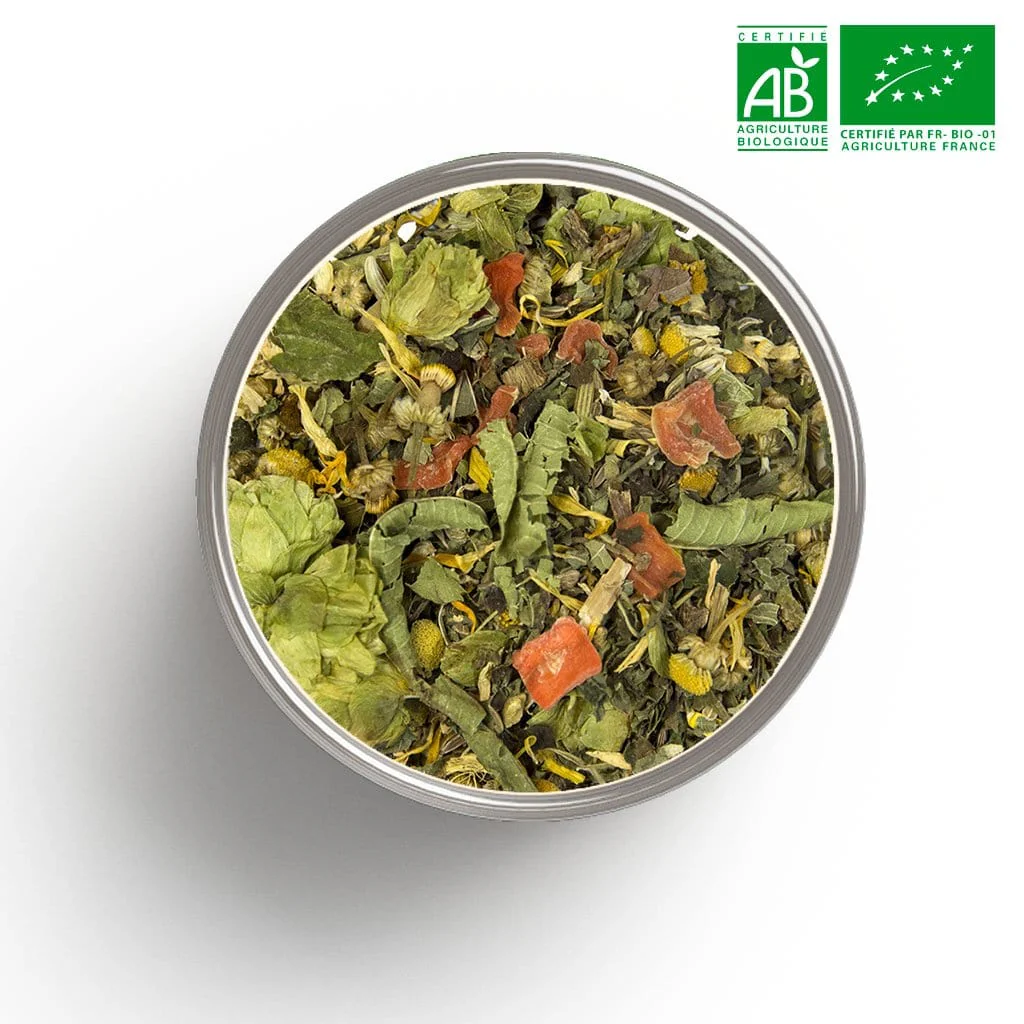 • Fleur de souci et houblon – Apaisants et adoucissants, ils soutiennent l’équilibre digestif.